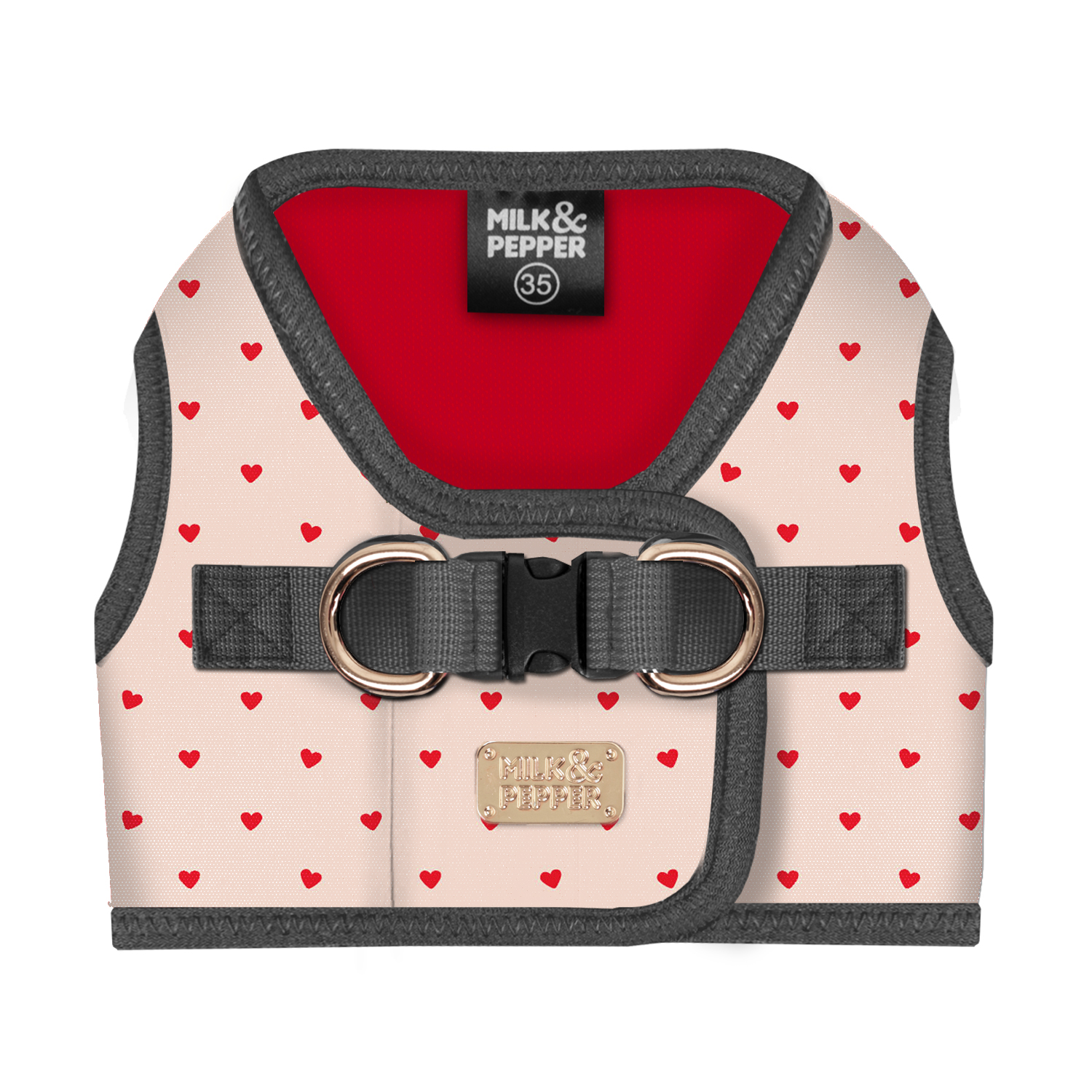 - Pequeña placa de metal dorado “Milk&Pepper”