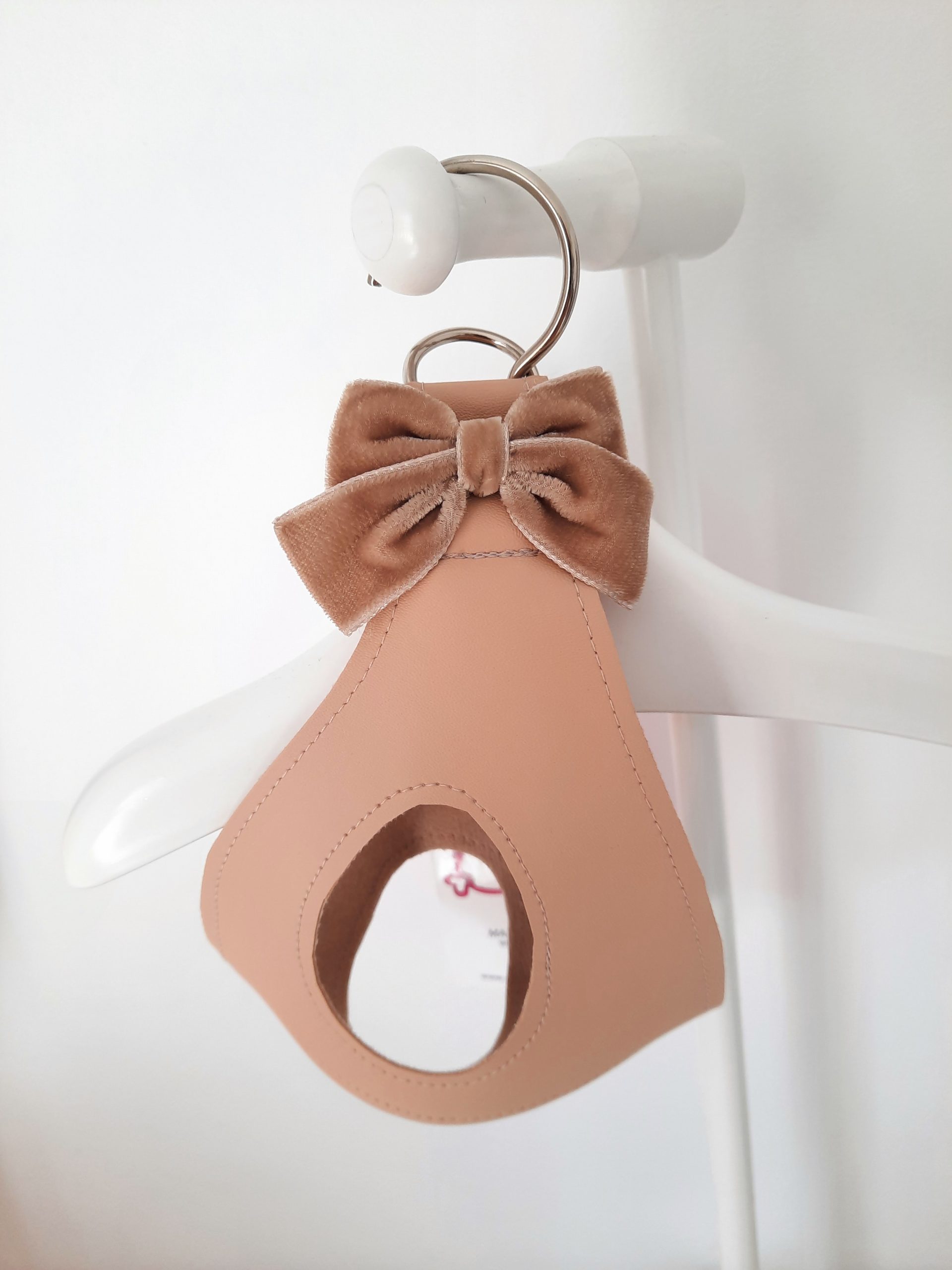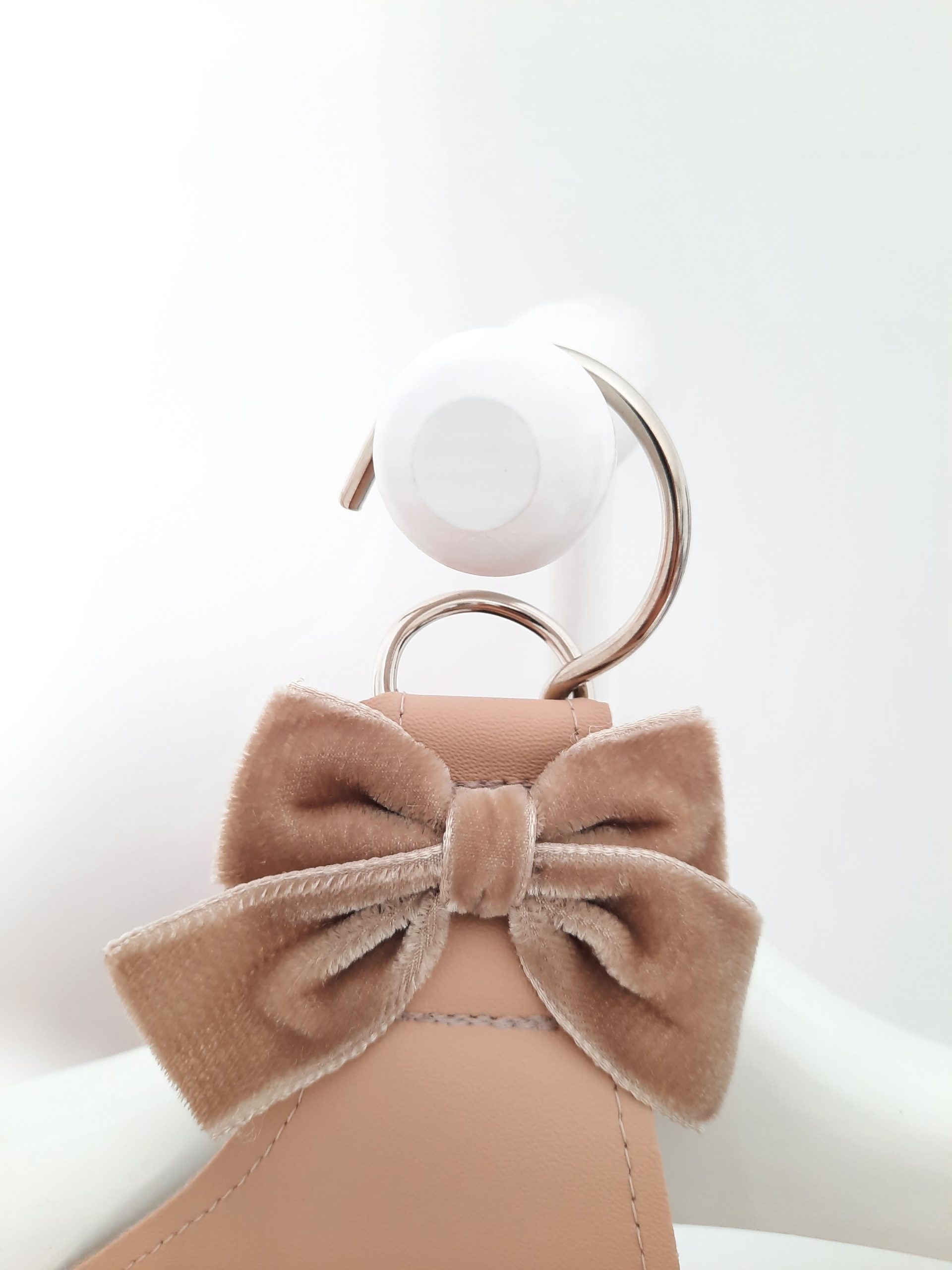 – Diseñado en suave piel napa beige con un lazo a juego a cada lateral.