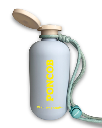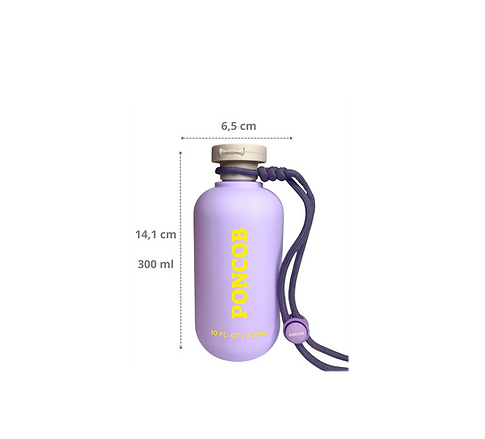 Botella de mano fabricada en silicona con un tapón sellado con membrana anti-goteo.