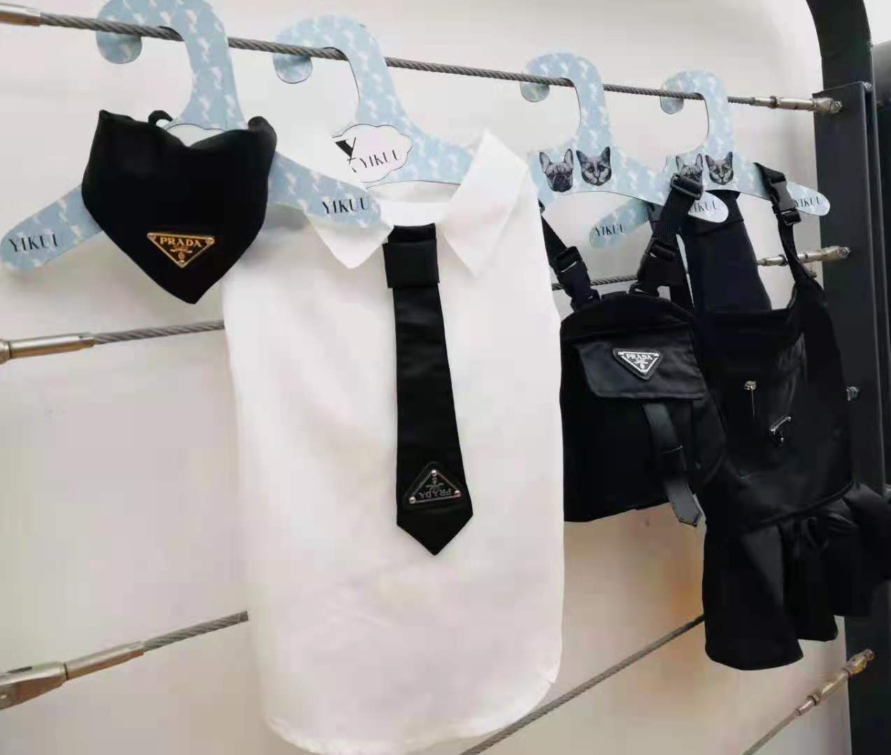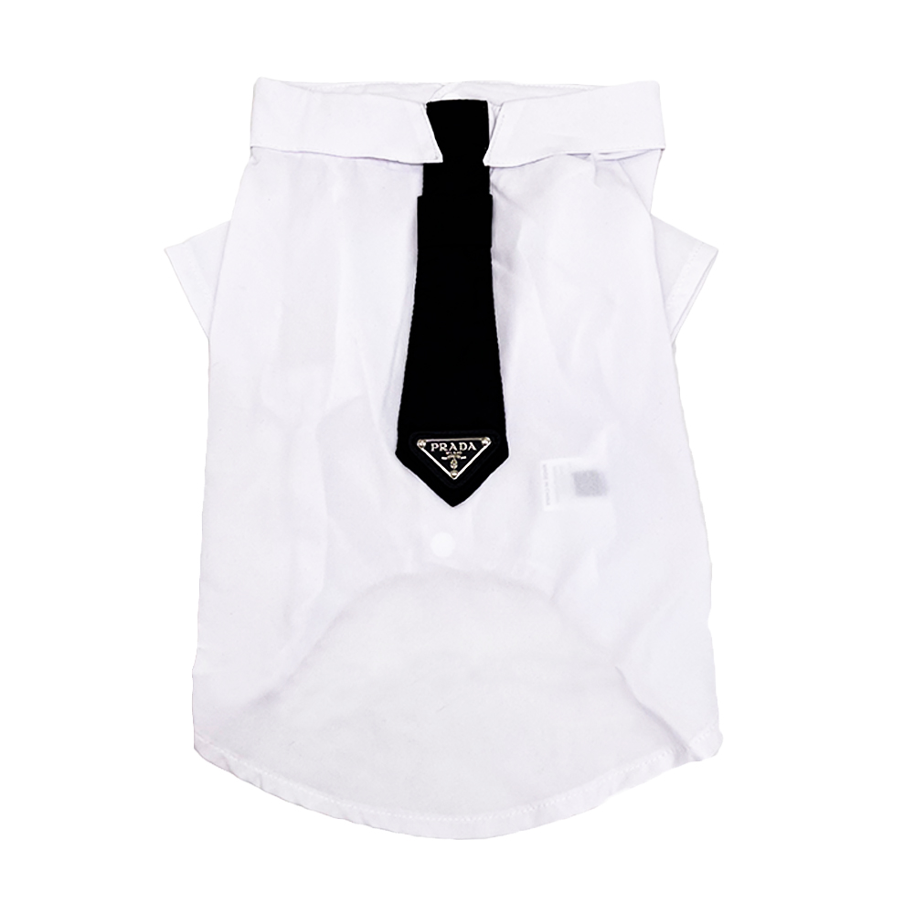 Camisa blanca con corbata negra incorporada.