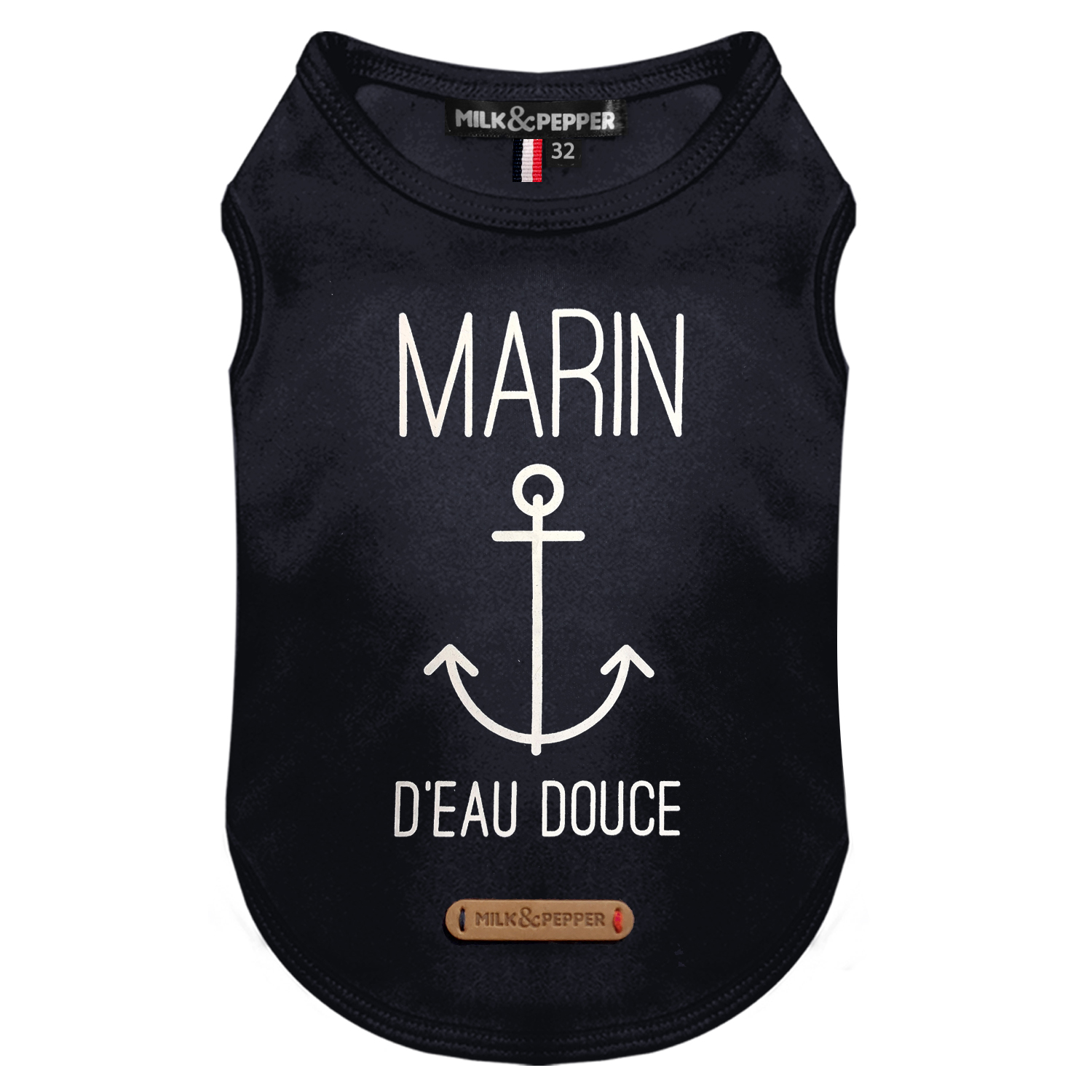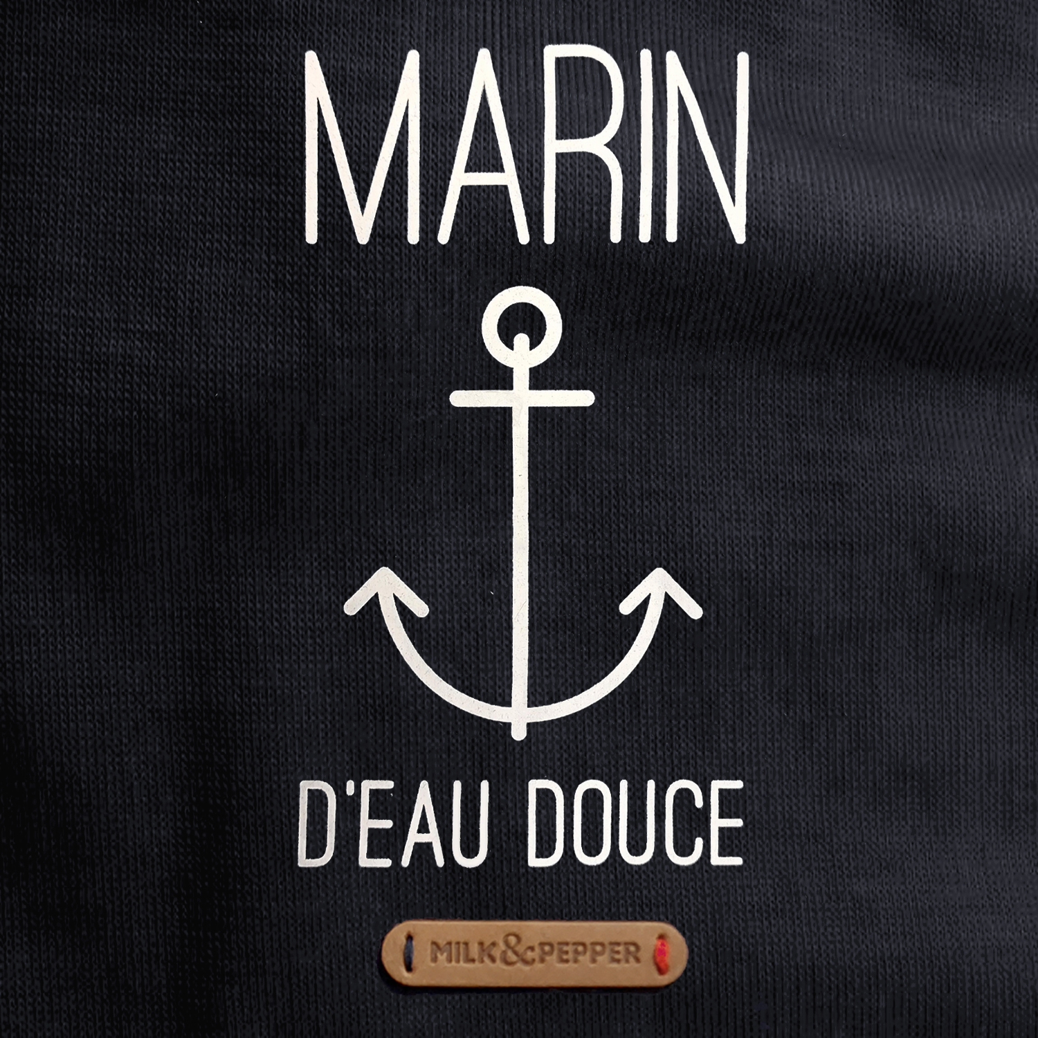 Etiqueta marrón con la marca grabada “Milk&Pepper”.