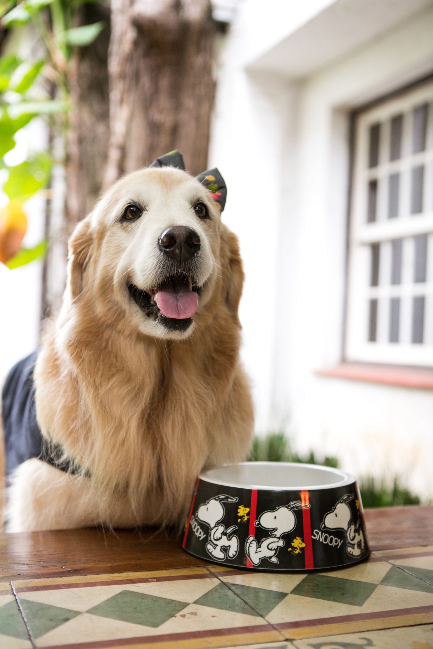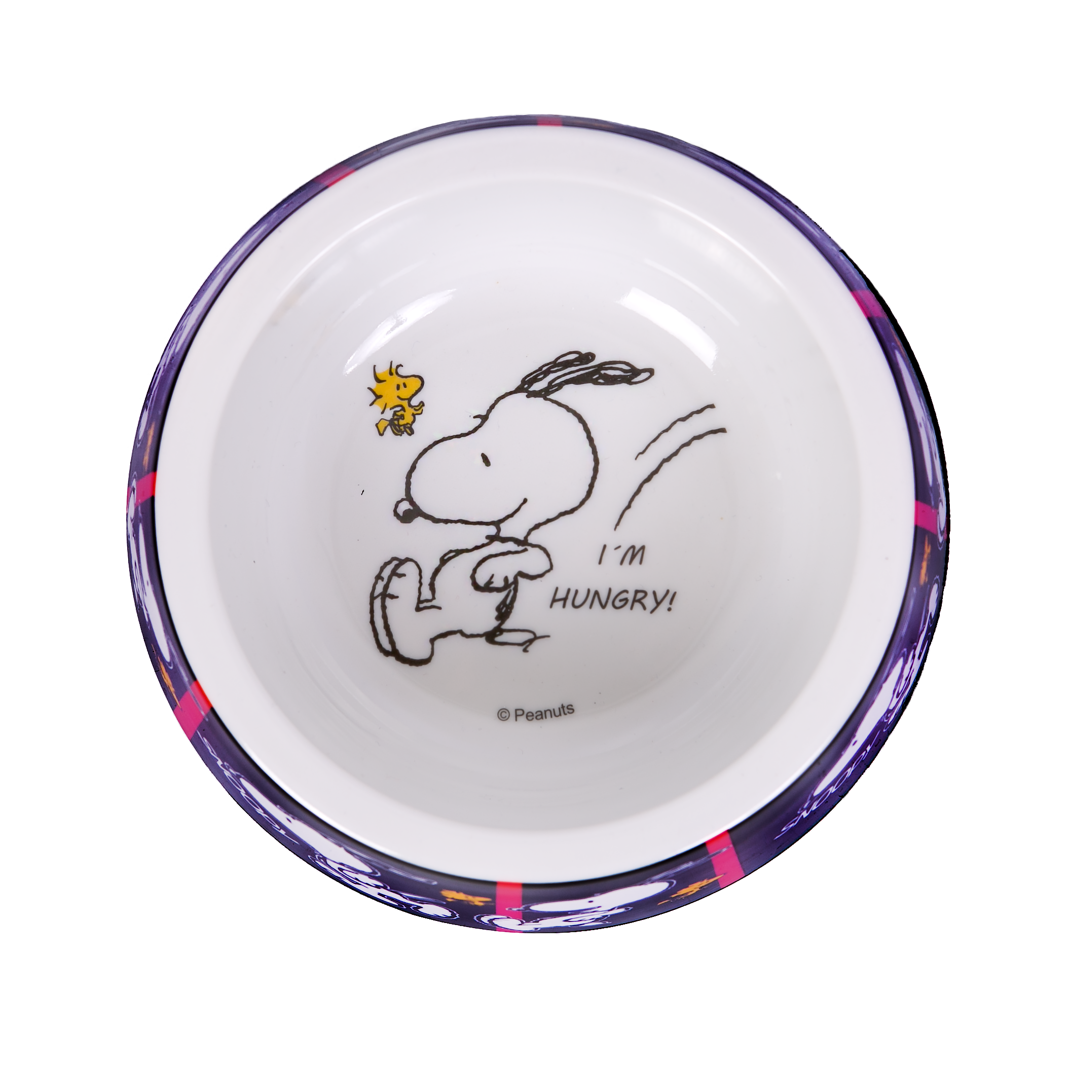Diseño de Snoopy en tonos negros en la parte exterior.