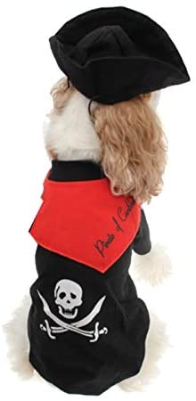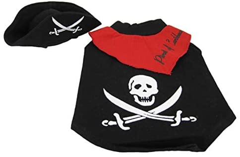 Camisa negra decorada con espadas y carabela coordinada con pañuelo rojo.