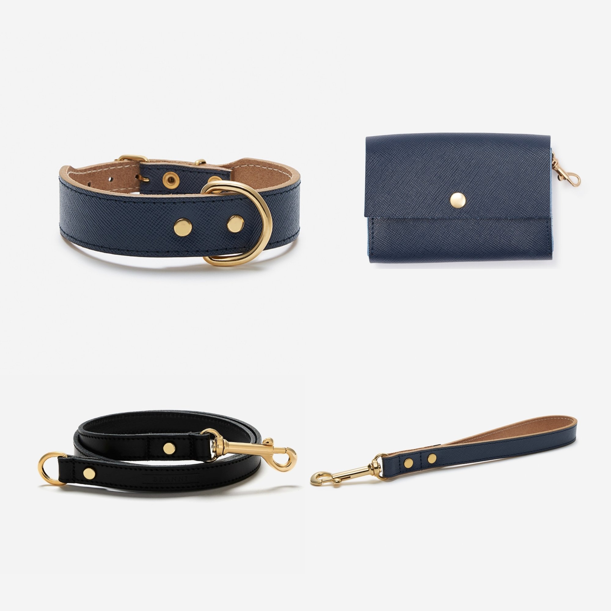 Escoge la talla de collar (consulta la guía de tallas más abajo para escoger la correcta) y el color de la correa (negro, marrón o coñac) y te llevarás un conjunto perfecto para tu perro.