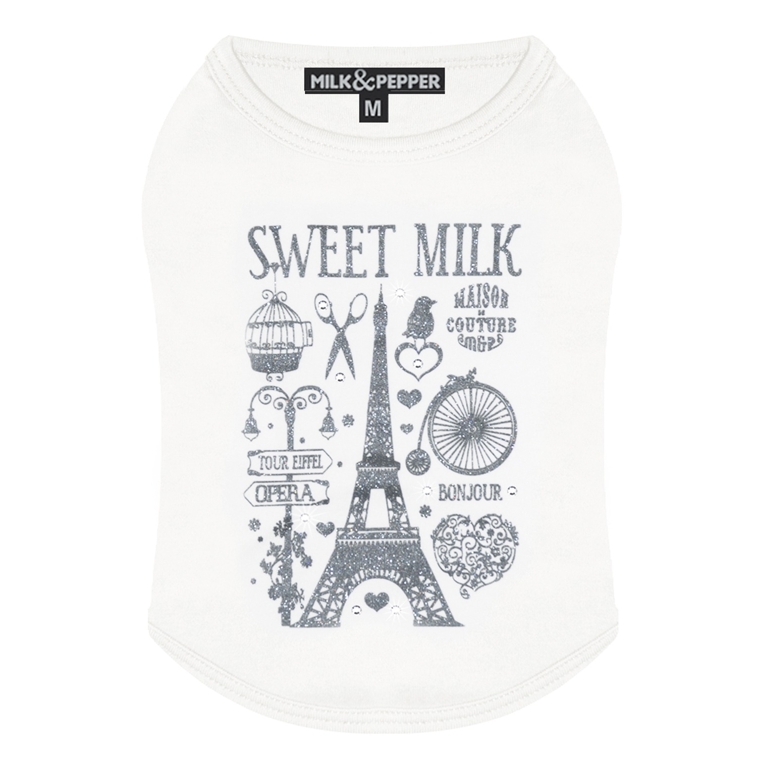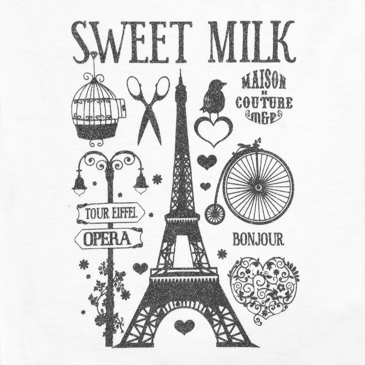 Camiseta blanca de algodón con elegantes dibujos de París.